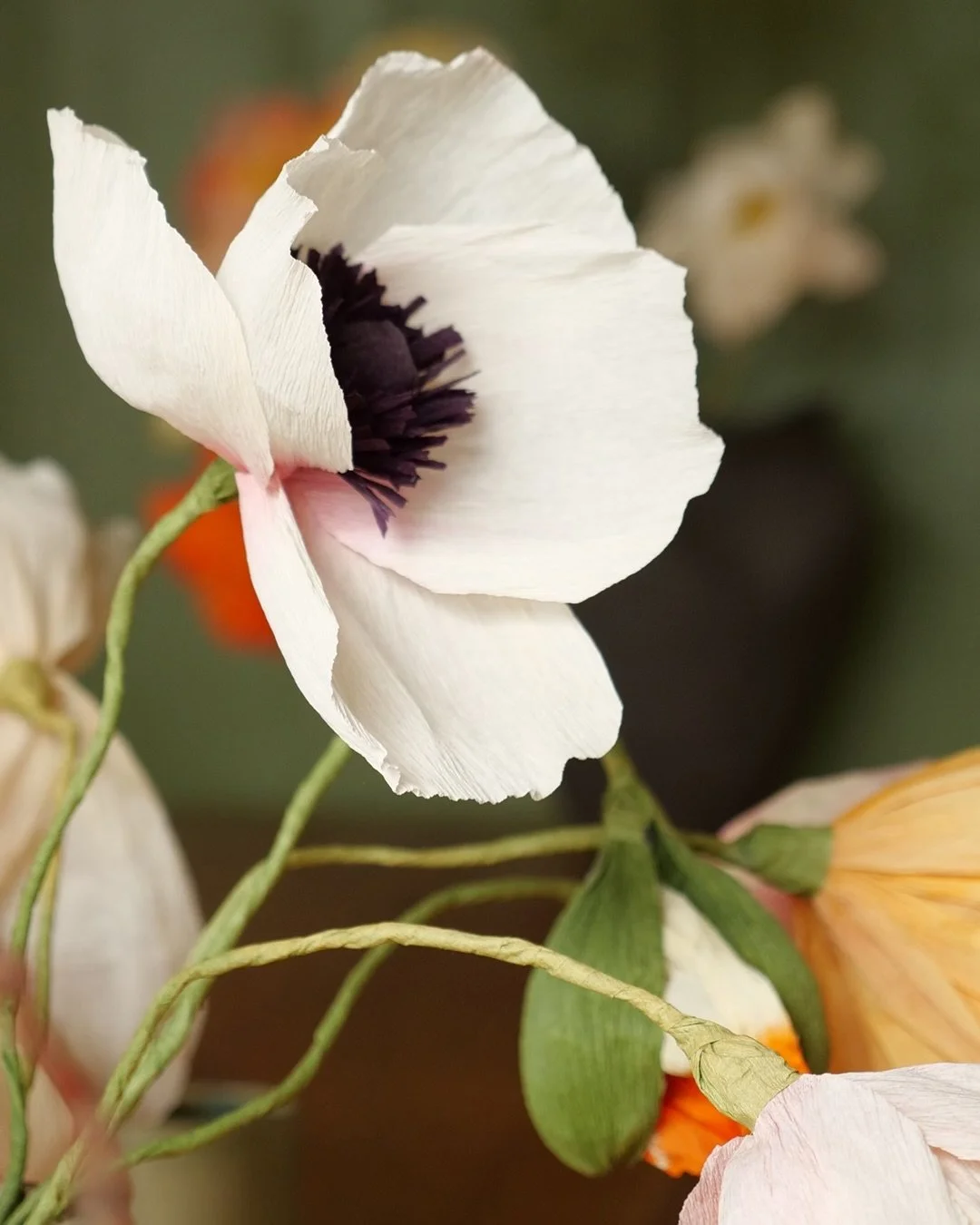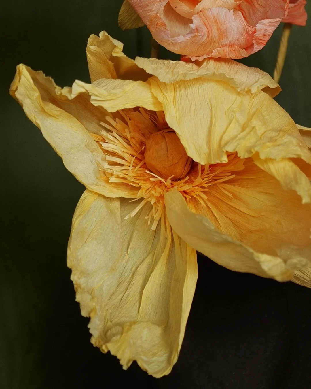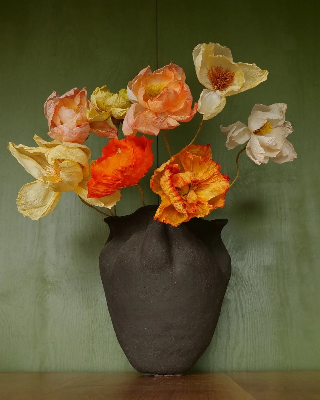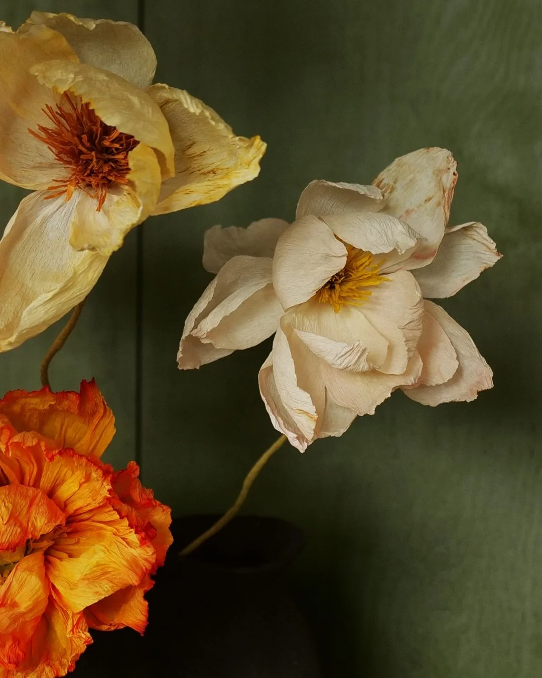 Paper Flowers are both art and alternative: a quieter, more sustainable way of holding onto nature. My work begins in real flowers – studied closely, lived with – but moves beyond them. I shift colour, distort scale, and follow intuition. The result is not imitation, but interpretation.